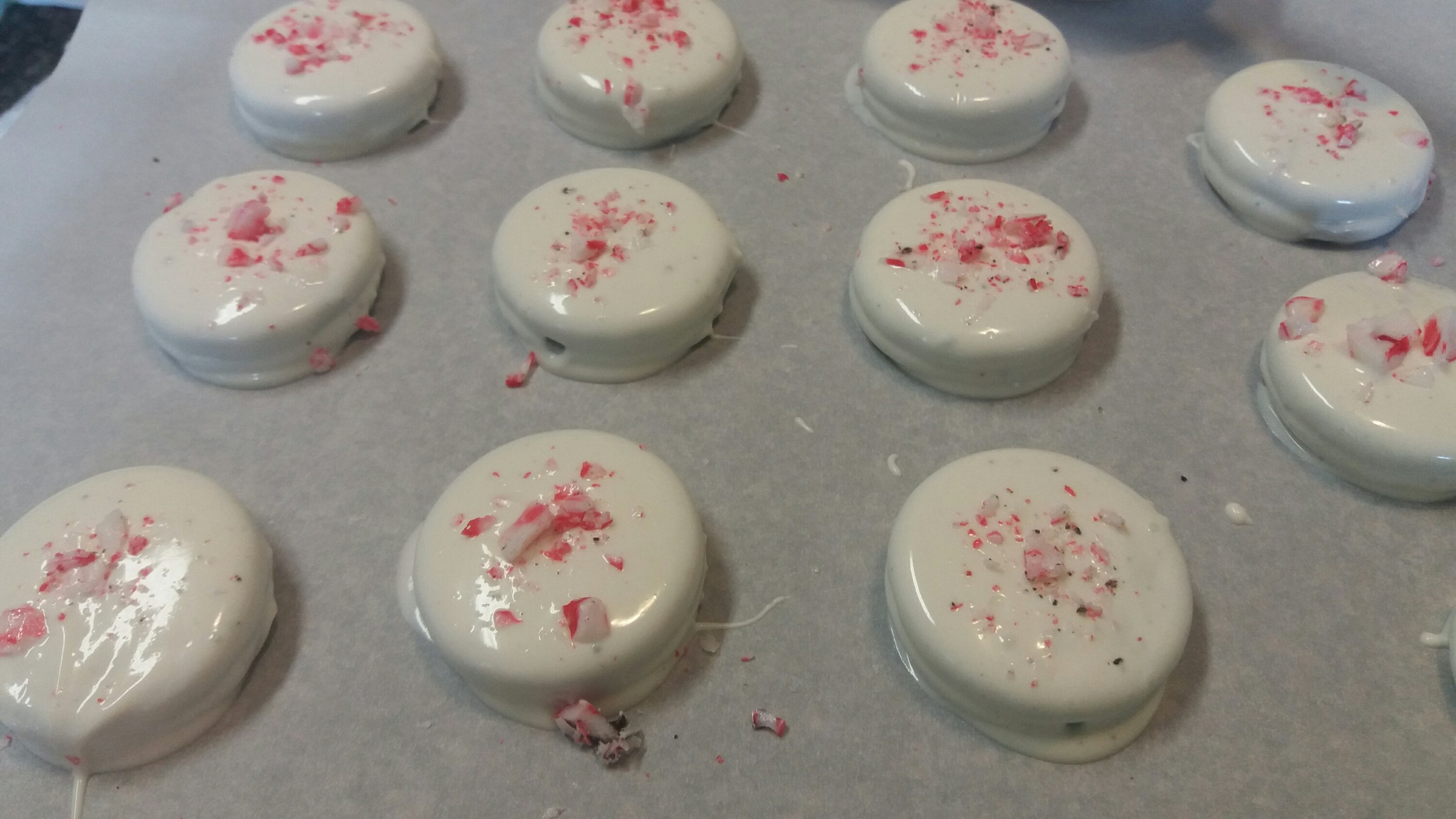 - Before the chocolate hardens garnish your cookie with a little bit of crushed peppermint. Place into refrigerator for an additional 10 minutes to harden.